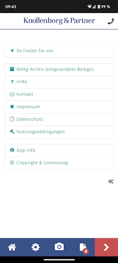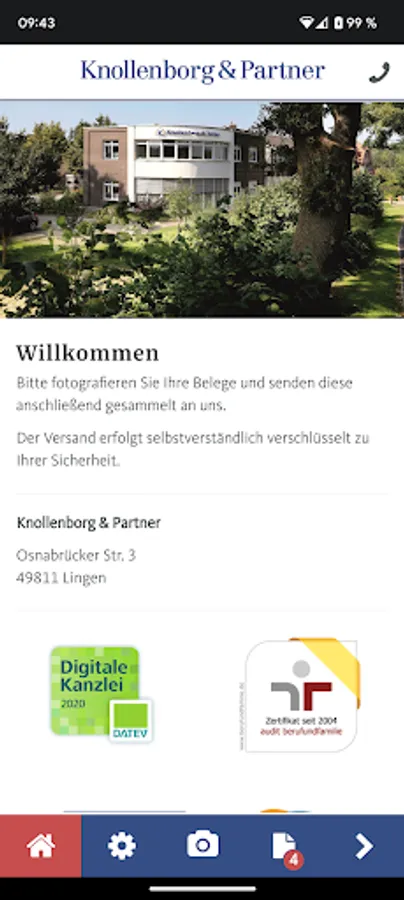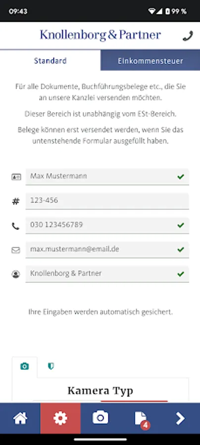 With the help of this app, you can send receipts, documents and other papers to Knollenborg & Partner quickly, securely and conveniently.