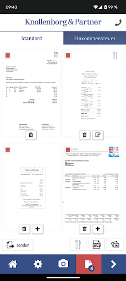 Simply take one or more photos of your receipts and send them to Knollenborg & Partner directly from the app with one click