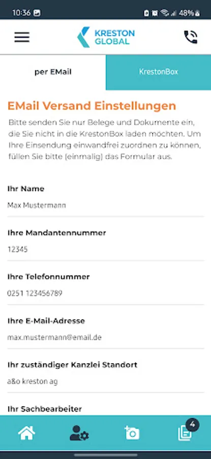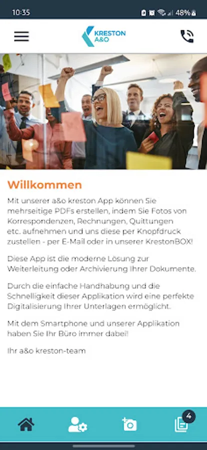 With the help of this app, you can send receipts, documents and other documents quickly, securely and conveniently to a&o kreston ag.