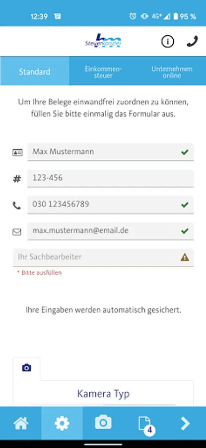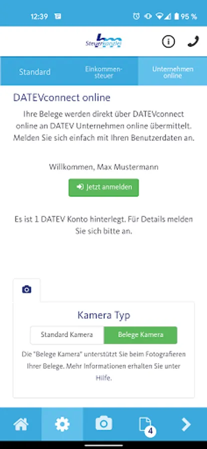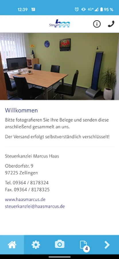 Using this app records, documents, and other documents can be quickly, safely and conveniently sent to us. Simply make one or more photos of your receipts and send them with a single click directly from the app to the tax office Marcus Haas.