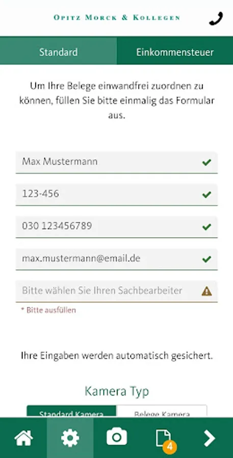 Use this app to a colleague send to Opitz Morck & Tax Consultants receipts, documents, and other documents quickly, safely and comfortably.