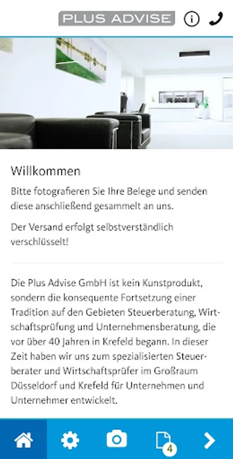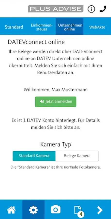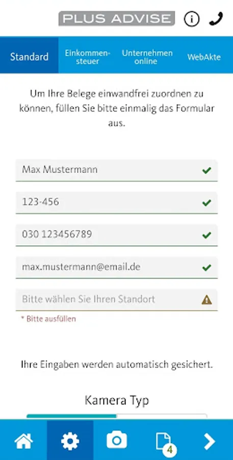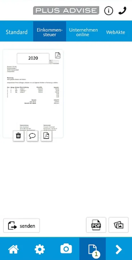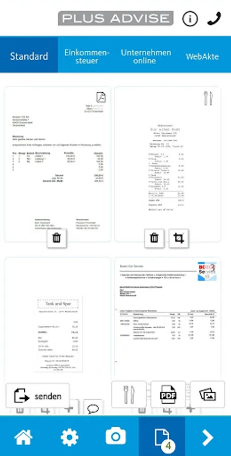 Simply make one or more photos of the documents and send them with a single click directly from the app to positive Advise.