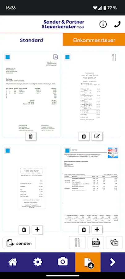 Simply take one or more photos of your receipts and send them to Sander & Partner Steuerberater mbB directly from the app with one click