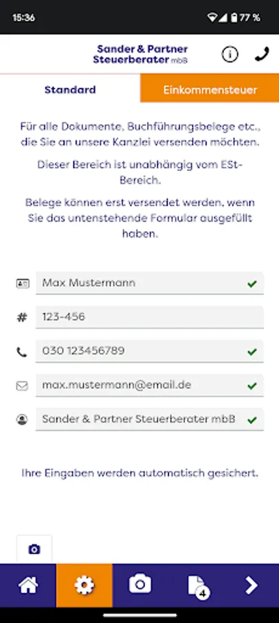 With the help of this app, you can send receipts, documents and other papers to Sander & Partner Steuerberater mbB quickly, securely and conveniently.