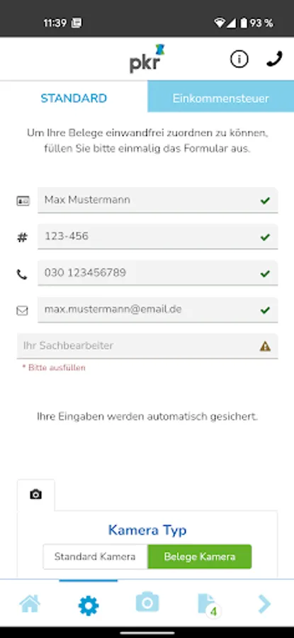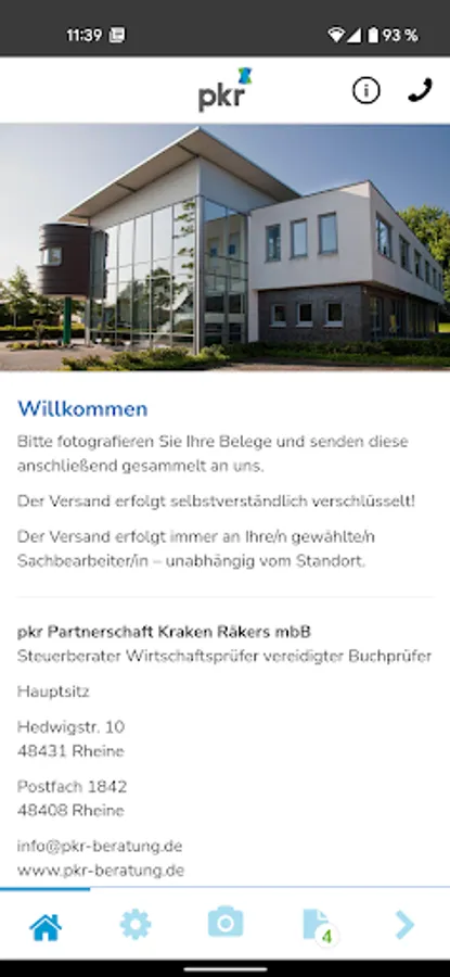 With the help of this app, you can send receipts, documents and other papers quickly, securely and conveniently to pkr Partnerschaft Kraken Räkers mbB.