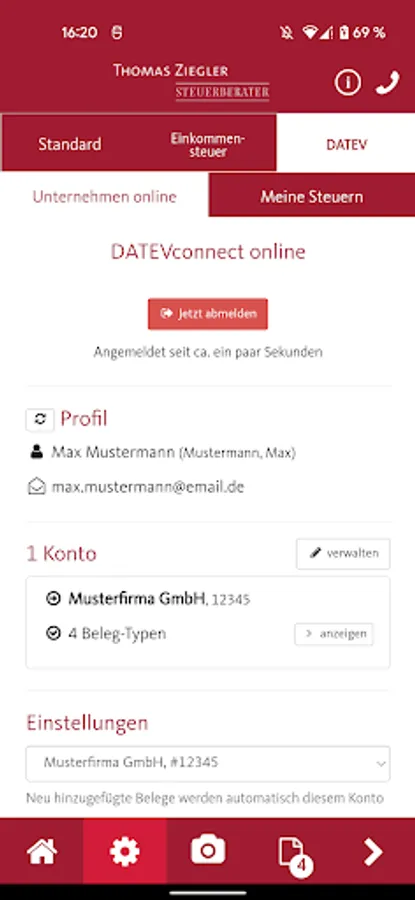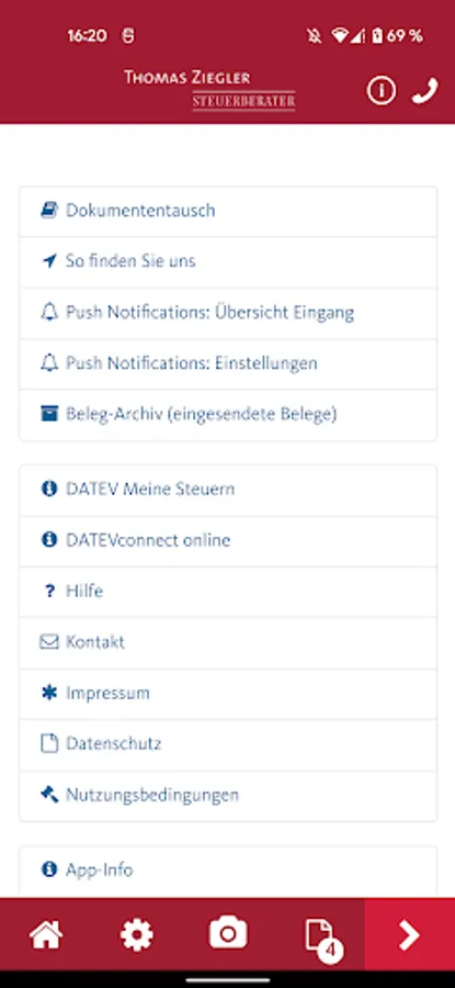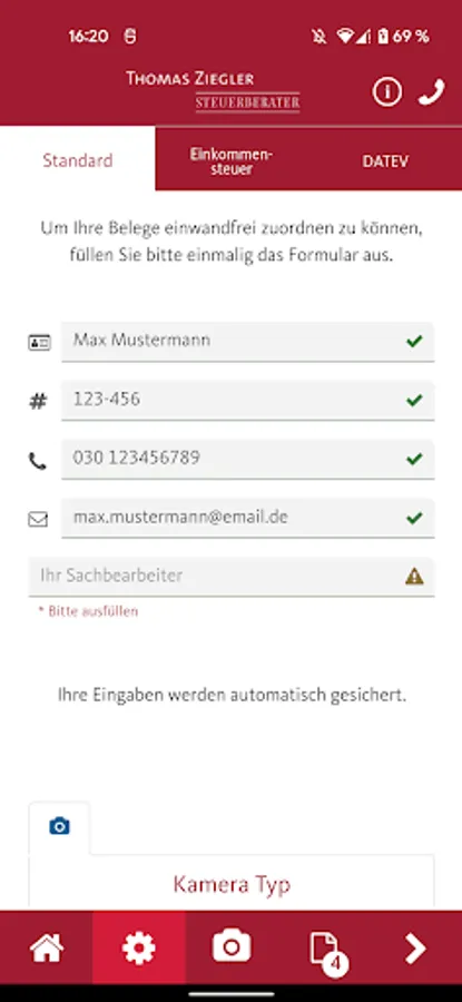With this app, documents, documents and other documents can be sent quickly, safely and comfortably to Thomas Ziegler, tax consultant.
