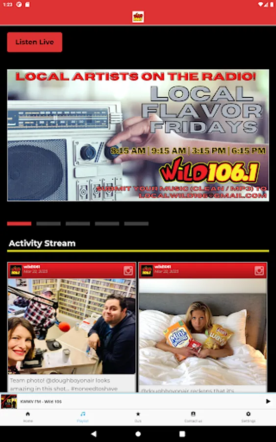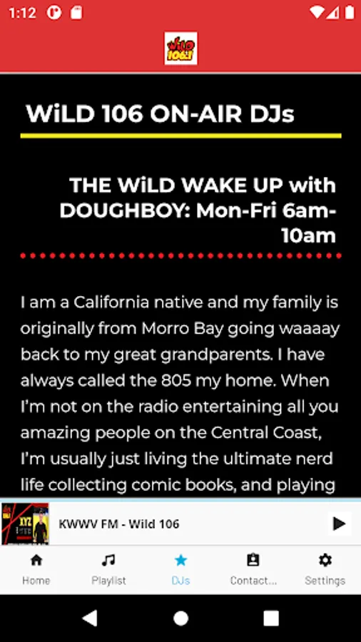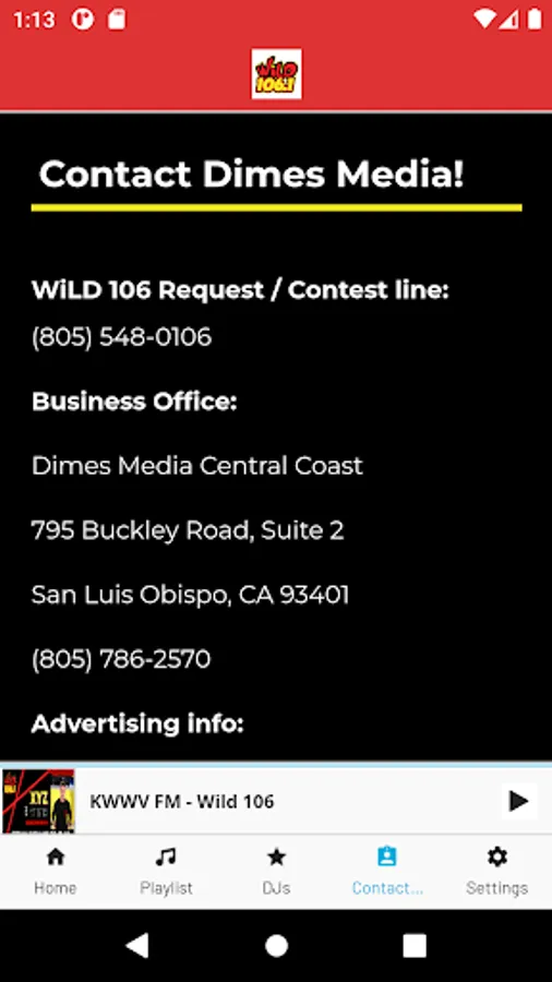 Listen to San Luis Obispo County's #1 radio station for today's hit music... everywhere yougo! No static, high quality digital audio through your internet connection. Stream to yourbluetooth headphones or speaker and listen ANYWHERE! Shows the title and artist of songsthat are playing, get access to premium content, contests, make requests, shout-outs andmore! And the best part is... this app is 100% FREE! Never be without the Central Coast'sfavorite station, WiLD 106!