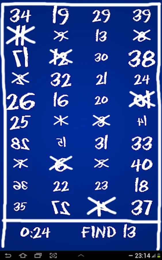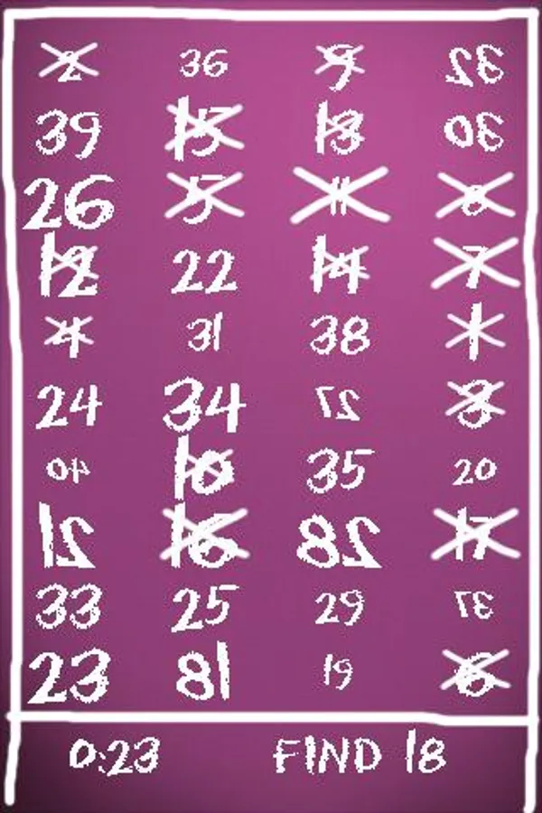 All you need to do is to find one by one all the numbers according to level's instructions. When you click on a number - it gets crossed out. The faster you cross out all the numbers, the higher will be your result in the high scores table.
