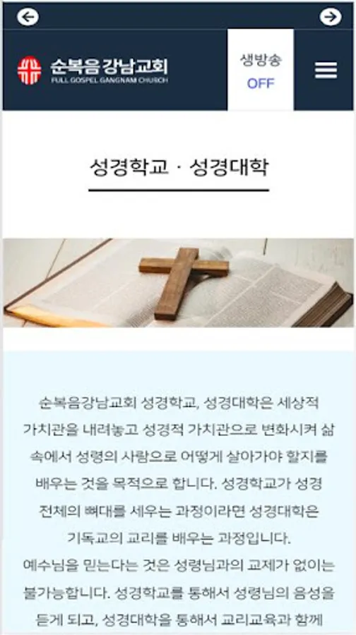 Church Introduction, Church Guide, New Family Guide, Pastor Jang Gyun Lee's Sermon, Live Broadcast, Praise,