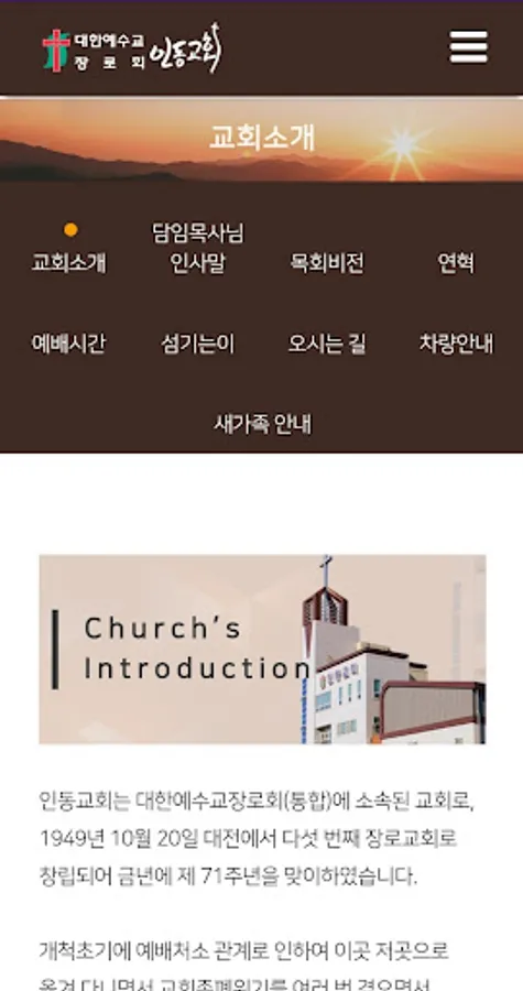대전 동구 충무로 203번길 56에 위치한 인동교회 홈페이지입니다.