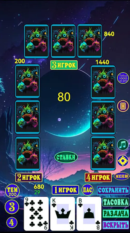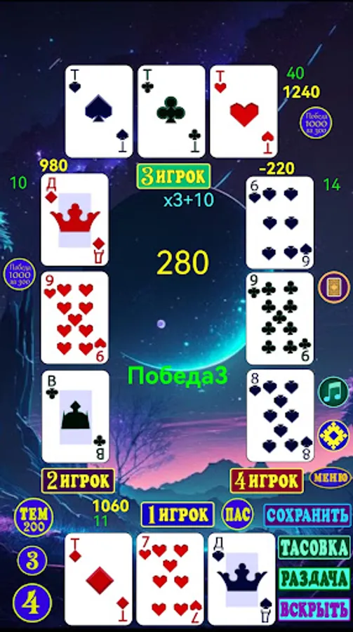 A game with my rules, based on trinka, seca, trynka. Four players are dealt three cards. The one who has the most in his hands won. After the distribution, you can double, triple, quadruple the bank. If several players have the same points, more than the others, a squabble occurs. The players who organized the swara do not add to the bank, all the rest report the floor of the bank. After the cards are dealt, the big points are taken by the bank. The following swara is possible, etc. During the game, your bank increases. You can buy: house, car, boat, plane, etc.