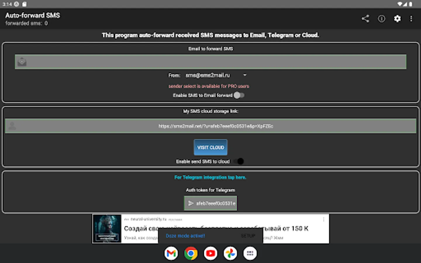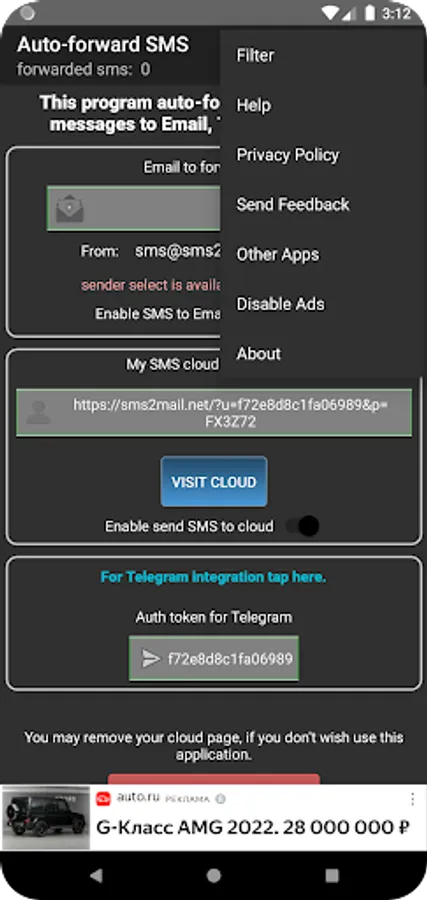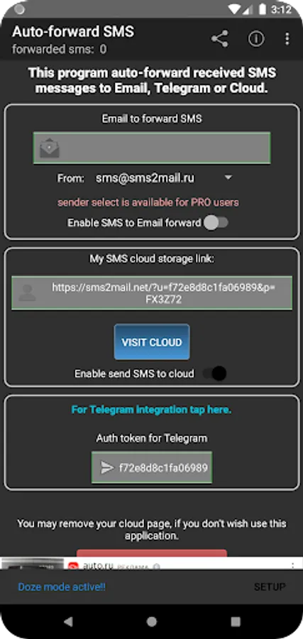 7) Ability to forward messages to Telegram (see cloud page for details);