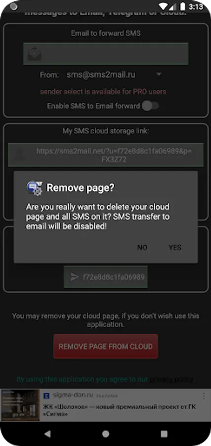 By using this app you must agree with our Private policy: https://sms2mail.net/private_policy_sms2web.htm