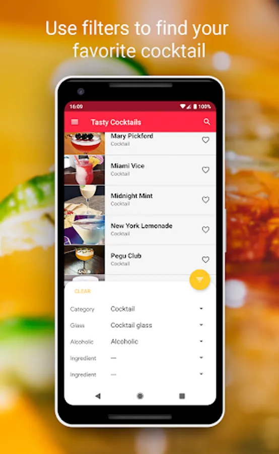 Cocktails you like you can mark as favorite and it became available in the favorites section