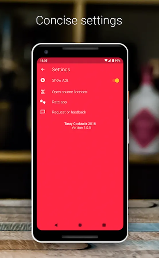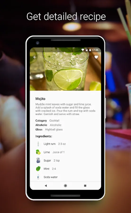Very simple and useful application for searching cocktail recipes. All cocktails have description and recipe with a list of ingredients. A random cocktail feature can bring a lot of fun for you. You can mark liked drinks as favorite and watch them in the favorites section