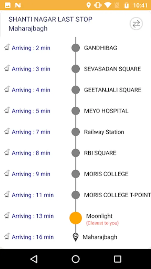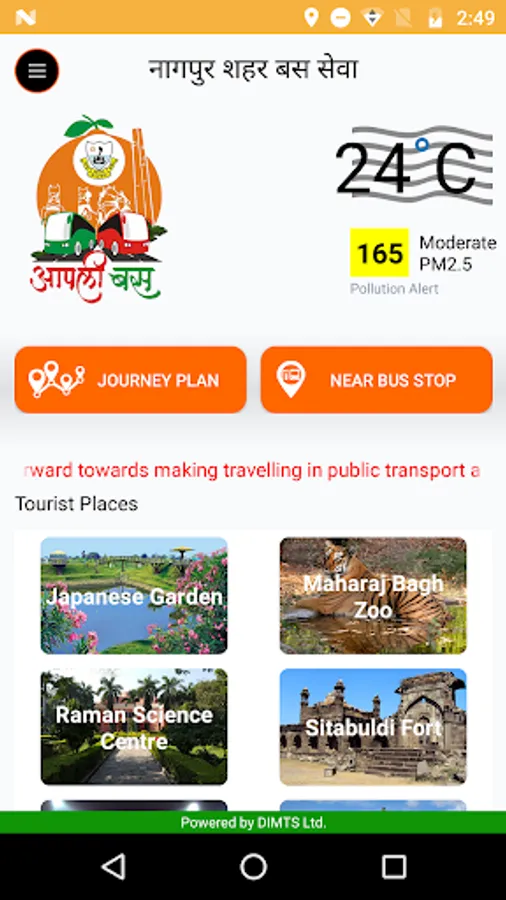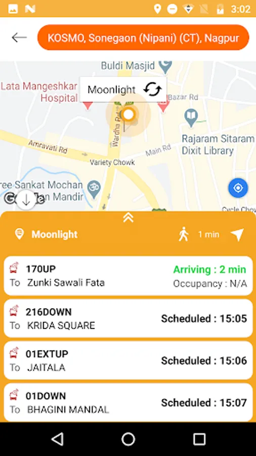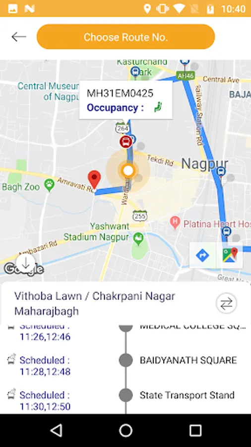 • Track location: Shows the real time location of the buses plying on the route on the Nagpur city map.