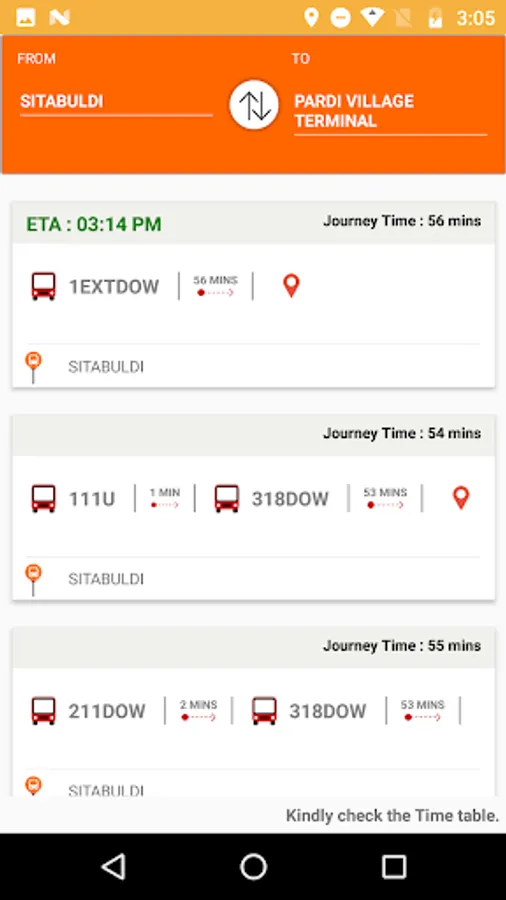 • Route Details: Shows the number of bus stops on the route and by on clicking the bus stop, ETA/STA/Frequency and even tentative occupancy in the bus will be shown.