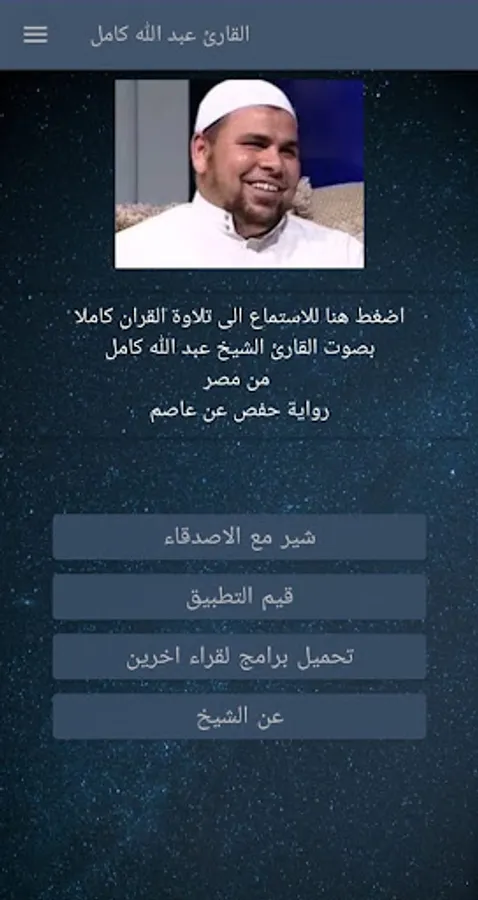 إذا أعجبك تطبيق تحميل القرآن الكريم بصوت الشيخ عبد الله كامل فنرجو التقييم للتطبيق