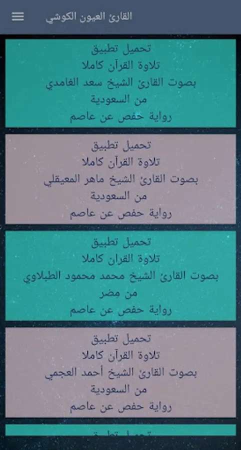 إذا أعجبك تطبيق تحميل القرآن الكريم بصوت الشيخ العيون الكوشي فنرجو التقييم للتطبيق