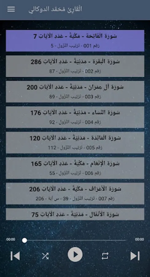 بمجرد الانتهاء من التلاوة يقوم التطبيق بعمل تشغيل للسورة التالية دون الحاجة إلي اختيار السورة