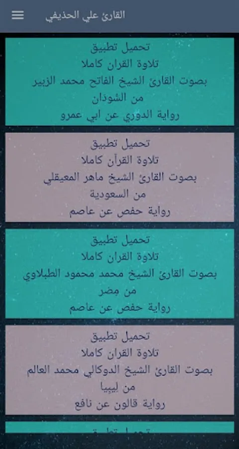 لن تدفع مال للشراء ولا مساحة كبيرة لتثبيت تطبيق القرآن بصوت علي الحذيفي .
