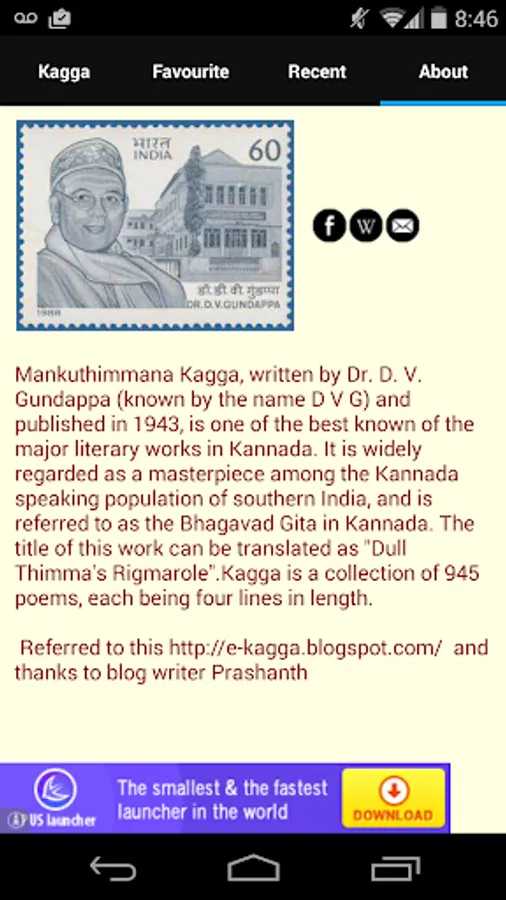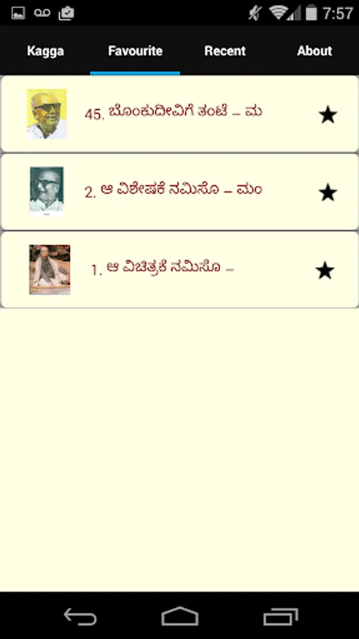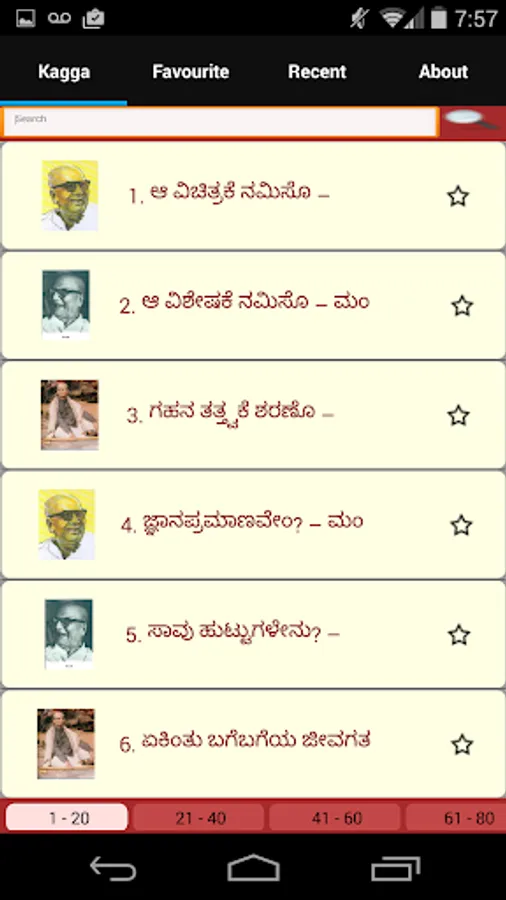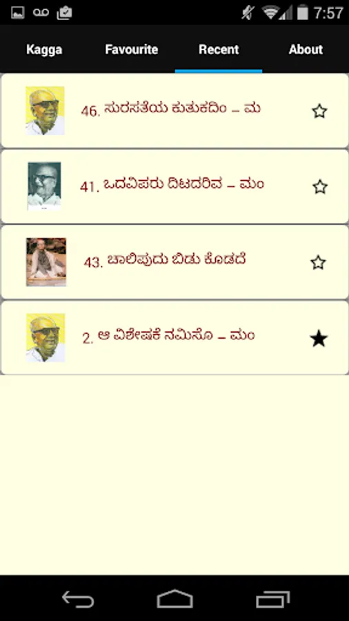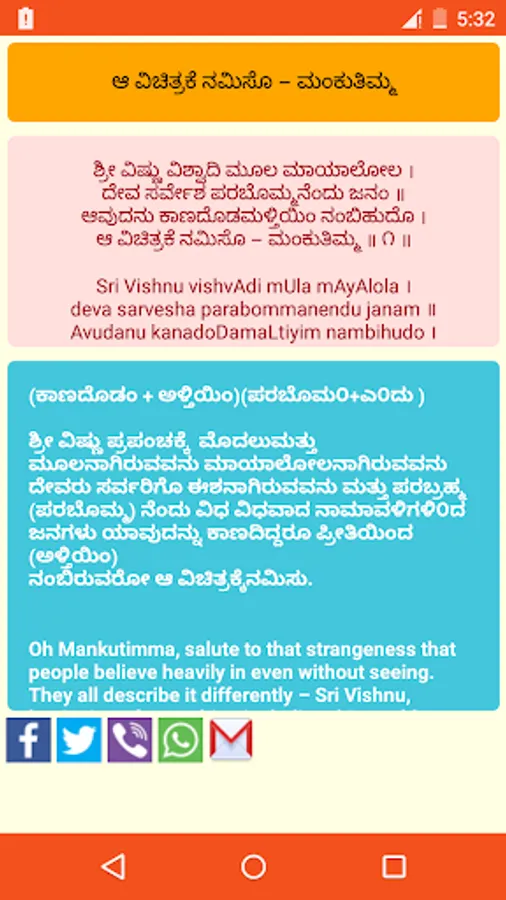 Here we are providing 100 kaggas in kannada and english with explanation in english. Start your day with kagga as application name says Dinakkondu kagga(One kagga /day).
