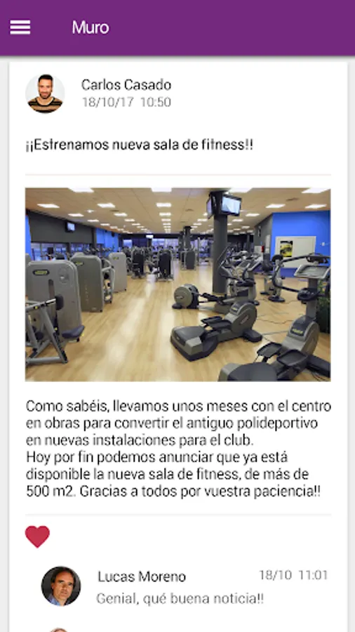 The LAUesport application allows communication from the sports center directly to the users' mobile, in real time, with instantaneous missatges. It is a two-way communication channel, the center will be able to send missatges to peers and/or users, and those can also send missatges to the center.