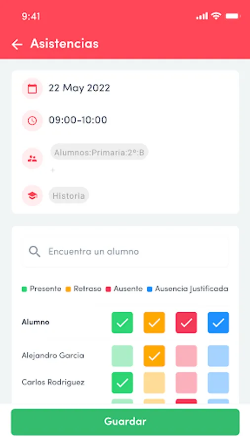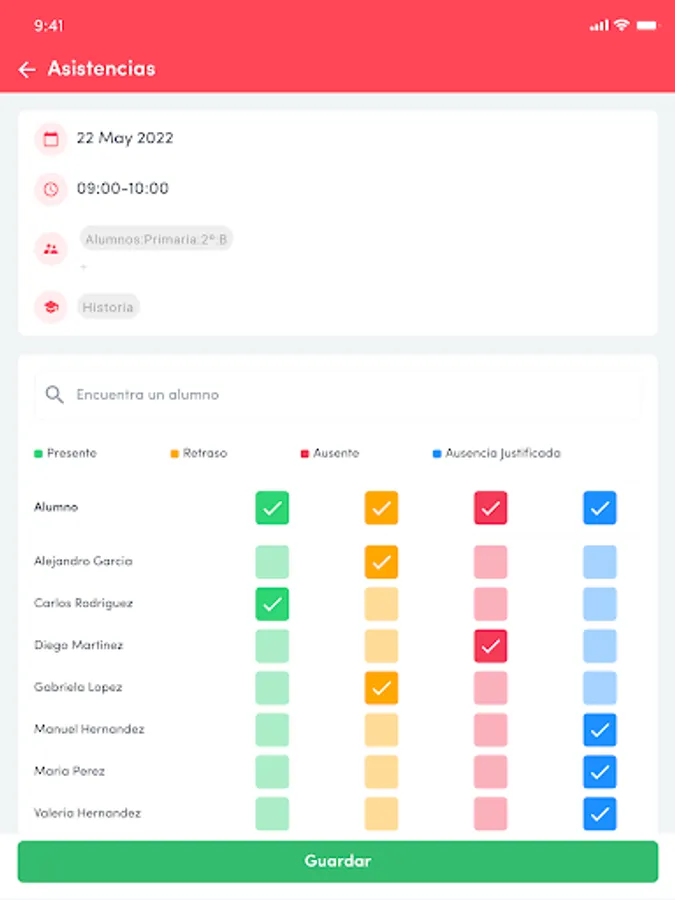 - Follow-up of the class with positive skills (collaborates with classmates, participates in class, has done homework, etc.) or negative (warning, expulsion, annoys their classmates, etc.)