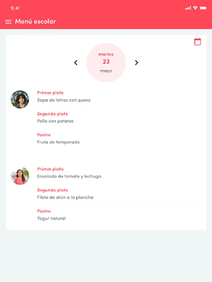 - Easily consult the school menu of your children