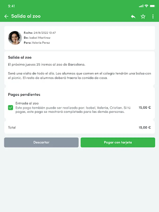 The application allows you to have a direct contact with the families because they are always informed of all the activities of the school.