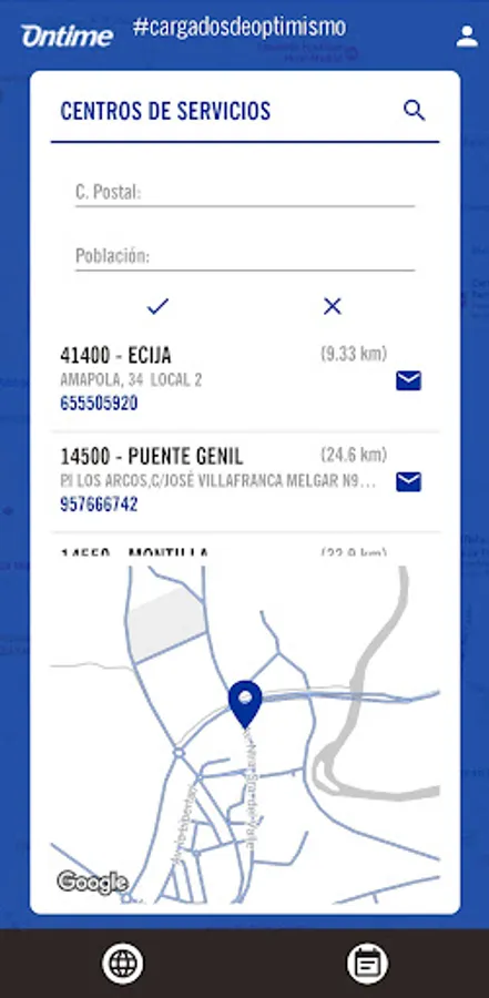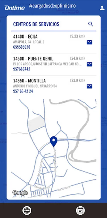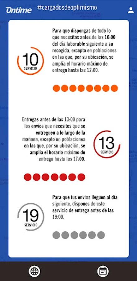 With this App you will be able to track all your shipments or collections at the moment, locate your nearest service center, access the customer area or change and personalize the address and delivery date of your package. A whole range of possibilities if you get optimistic with Ontime.