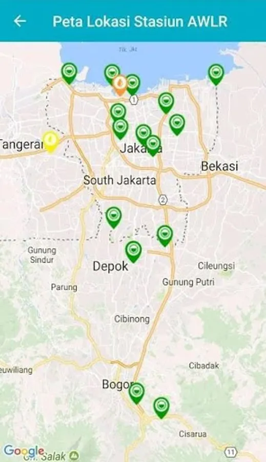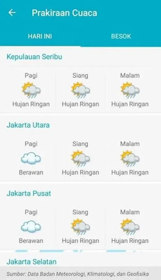 3. Displays weather forecast information for the Jabodetabek area (Data from BMKG)