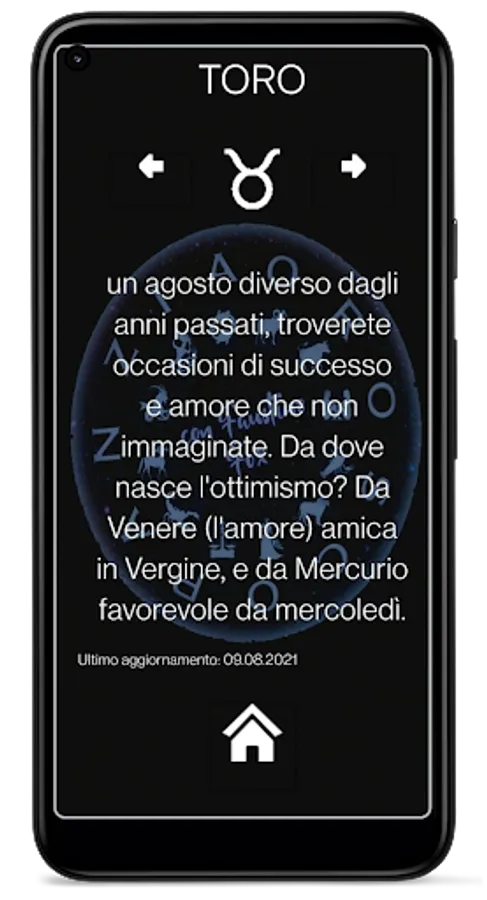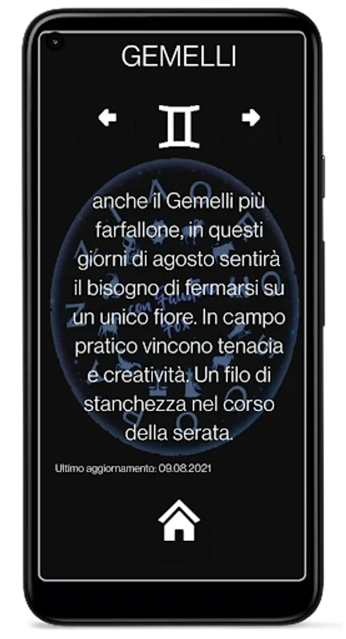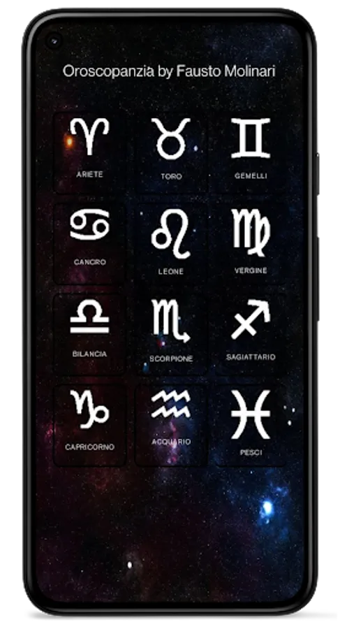 The application of Fausto Molinari's horoscope, aired every day on radio and TV at 9:15 am