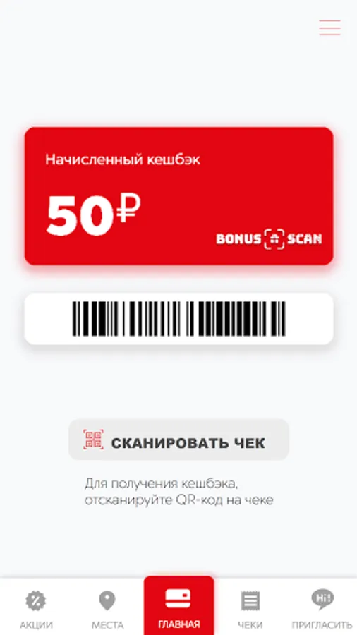 Bonus Scan is a free demo application with which you can get virtual cashback for checks and online purchases.
