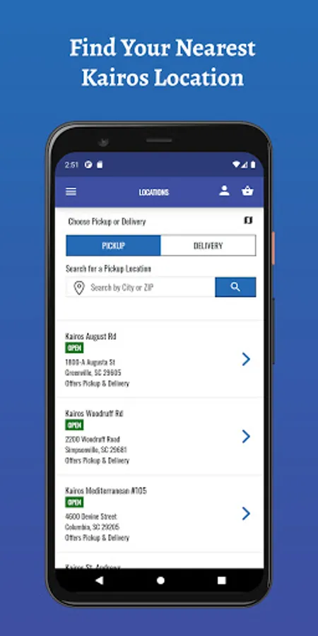 - Enable geolocation to find your closest Kairos restaurant