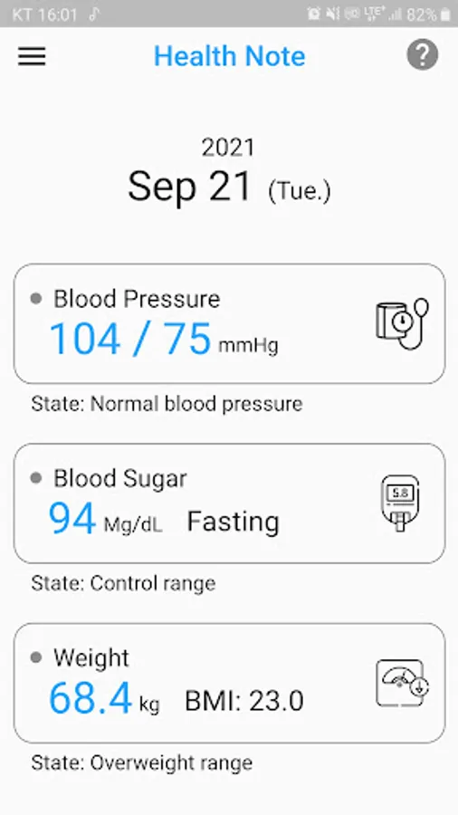 - Health notes for blood pressure, blood sugar and weight management