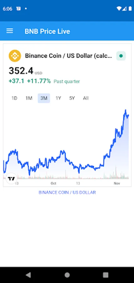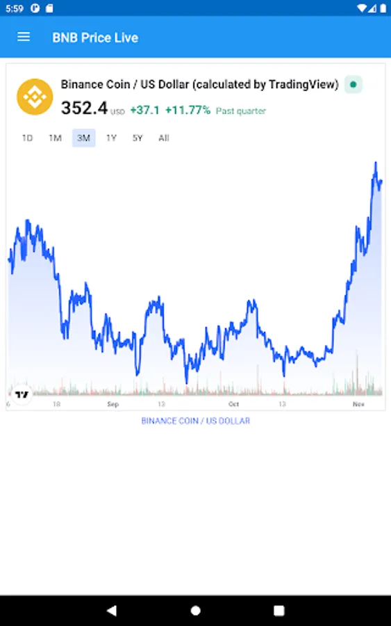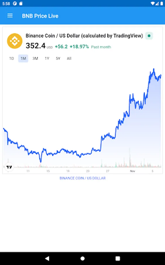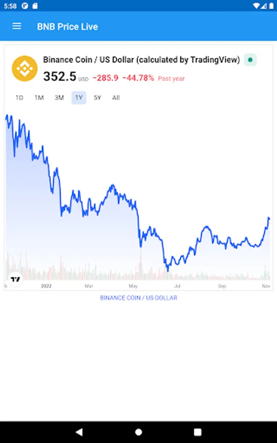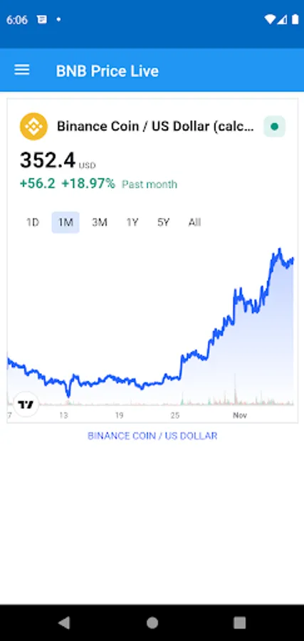 This really simple app provides the current Binance BNB Price Live for you, with a simple live chart. Adjust the chart to using a wide range of times from day to five years.