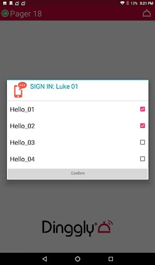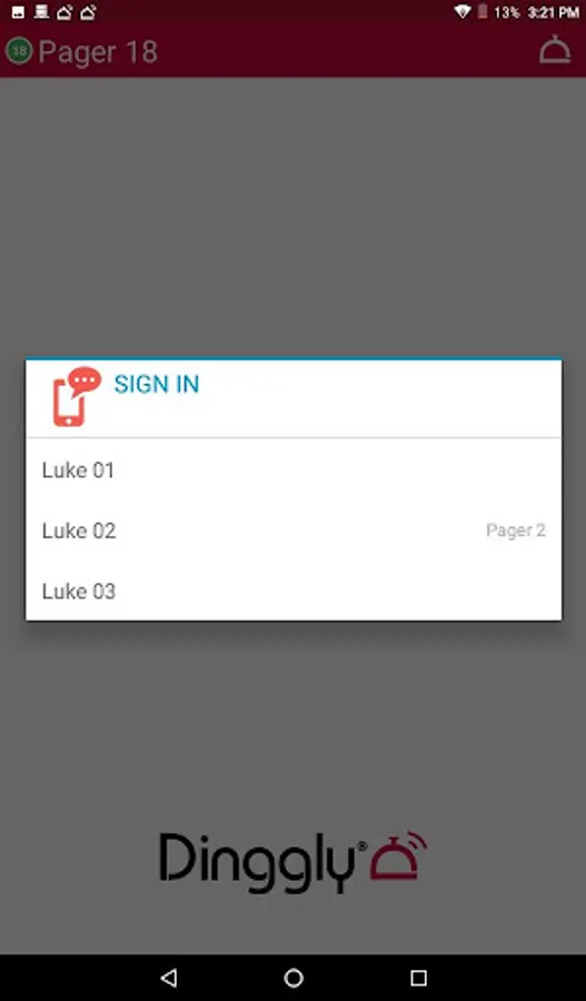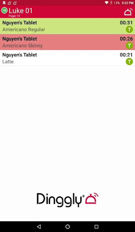 Pager Android app for Dinggly Hospitality System