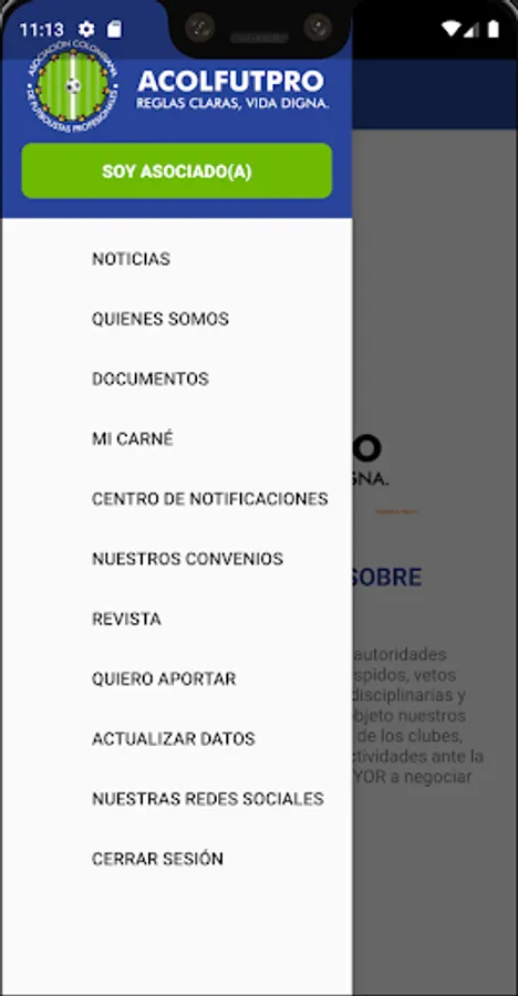 In the official APP of the Colombian Association of Professional Soccer Players (ACOLFUTPRO), you can access as a member: