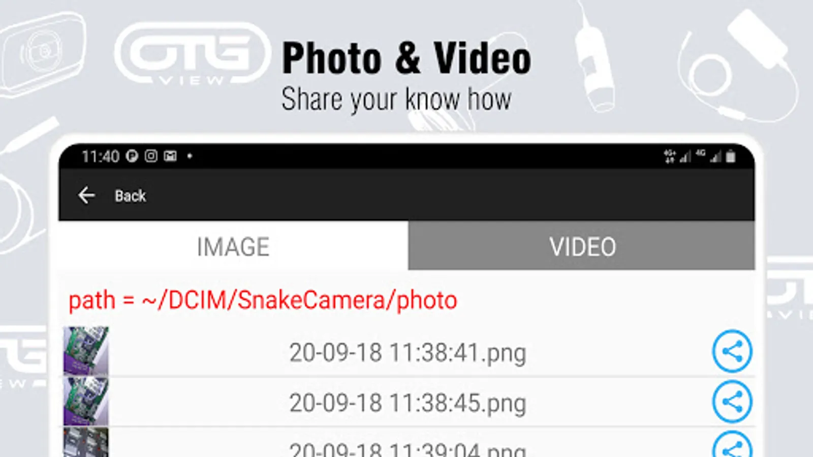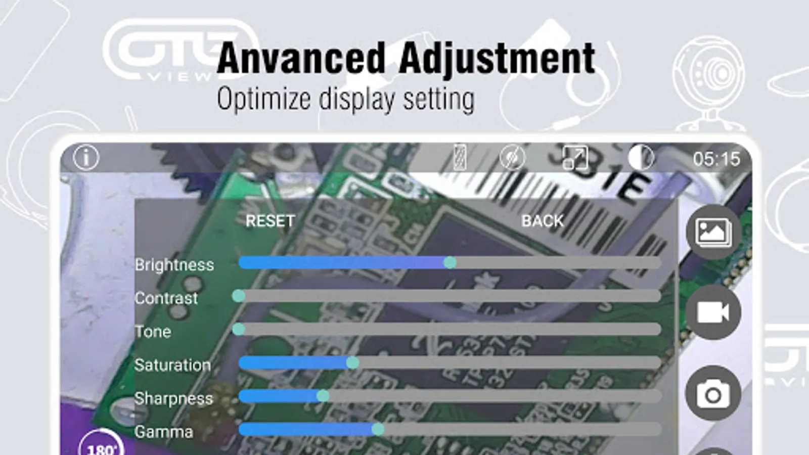 OTG View is an user friendly operating Android application, which allows you to use this software to view live inspection and recording videos, take pictures and storage in your devices. It also supports playback and other functions. Connect the OTG(USB) inspection camera`s USB to Android devices to view live video.
