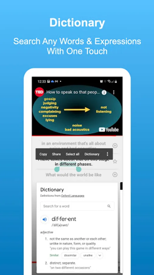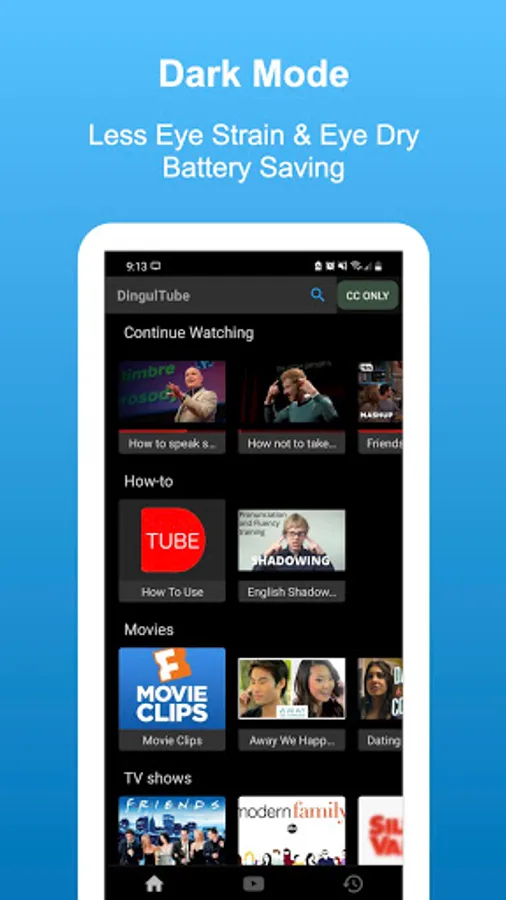 DingulTube is a language learning tool to help you shadowing any videos. You can easily listen, dictate and repeat any english contents. You can also record your voice and listen to your voice and compare it with original contents.