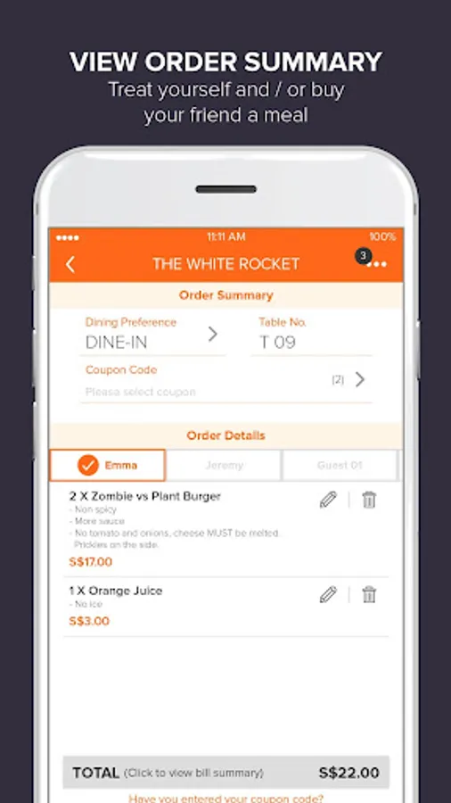 For customers, it allows ordering from any F&B outlet via their own mobile phones. Once ordered, Orders will be sent straight to kitchen for preparation.