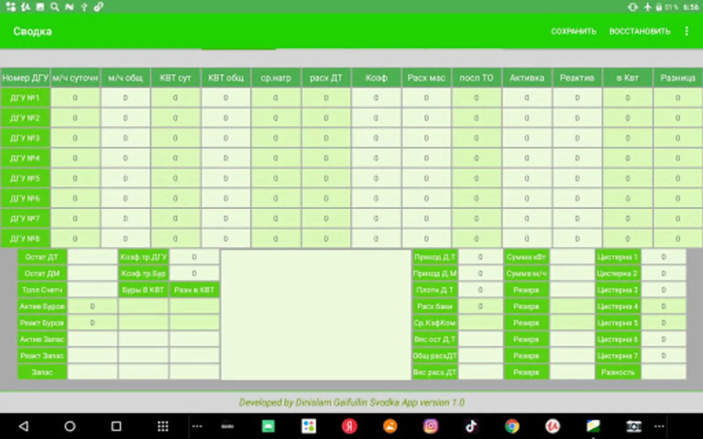 The application facilitates the process of calculating summary information. Data on the parameters of the machine (DGU, DES, PES) are provided in an easy-to-read form. The process of converting some numbers to others is also automated.