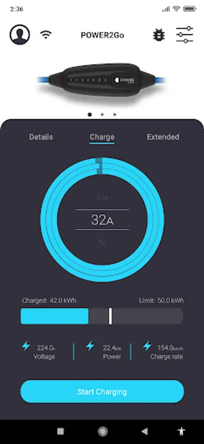 * Charge control - start or end your charging process at the push of a button