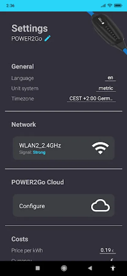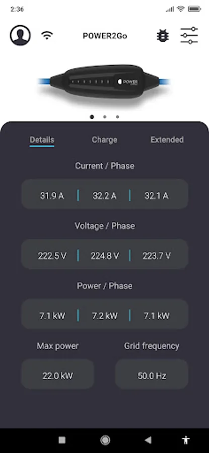 With the POWER2Go App you can view various settings for your POWER2Go, interesting statistics and information about your charging process. The app gives you access to advanced features such as photovoltaic led charging, automated charging reports, and the ability to control charging power and charging current. With the POWER2Go app you always have a complete overview of your charging process: different parameters such as voltage, current, power and energy are visualized and you can change the current in 1A steps while charging. Charging costs, average energy consumption, range, CO2 savings and other useful information are displayed and recorded.