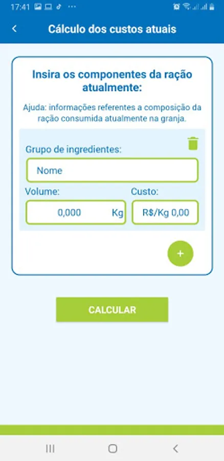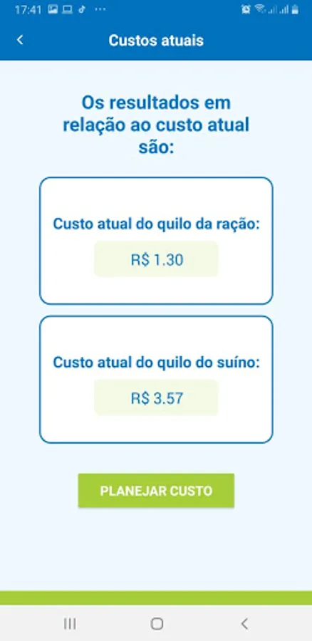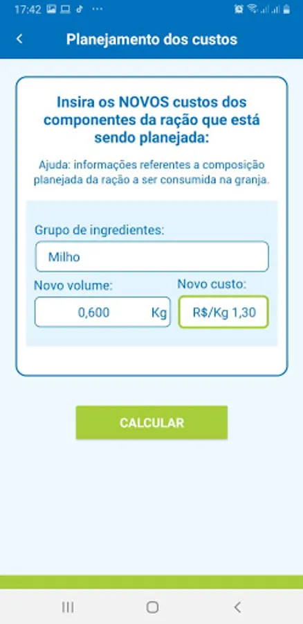 Fast and easy-to-use application for calculating the feed cost for swine with assertive planning aiming at the highest profit for the producer.