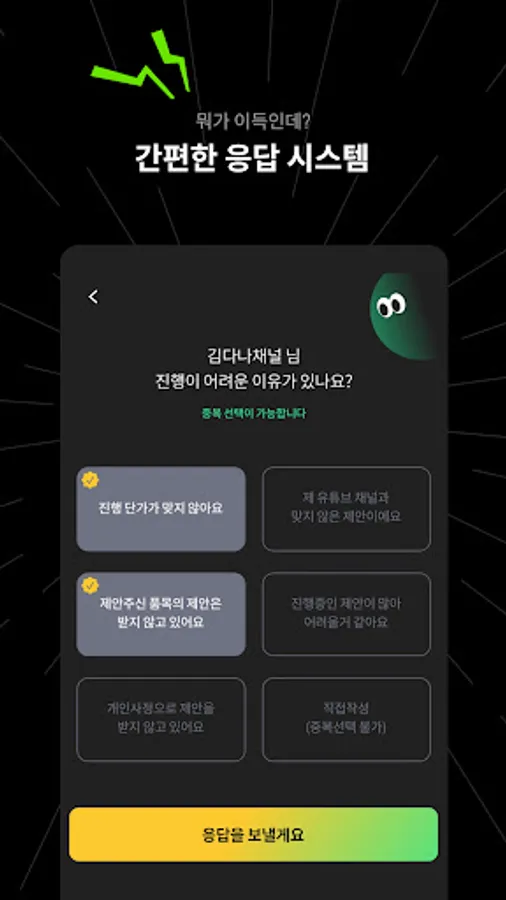 Even if you do not write text individually, simply respond with a few buttons and receive a 'reward' after responding! It will be a profit for the creator just by responding to the proposal.