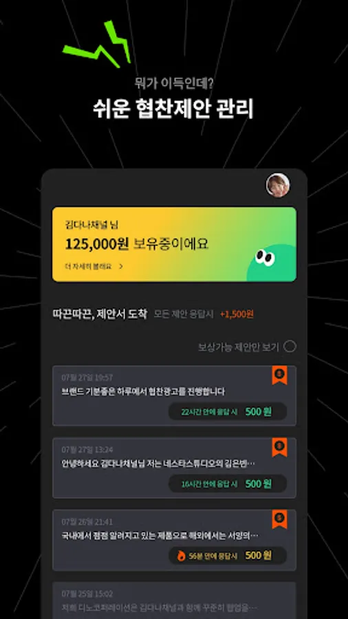 : You can immediately pay 1 won to your bank account for the revenue collected through proposal responses!