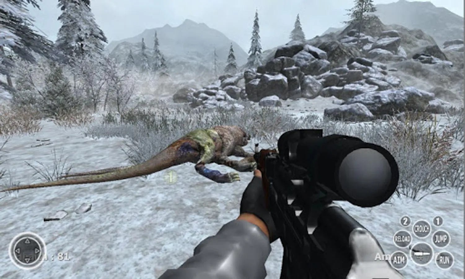 Dinosaur hunting game simulating tracking down dinosaurs and killing them with different weapons.