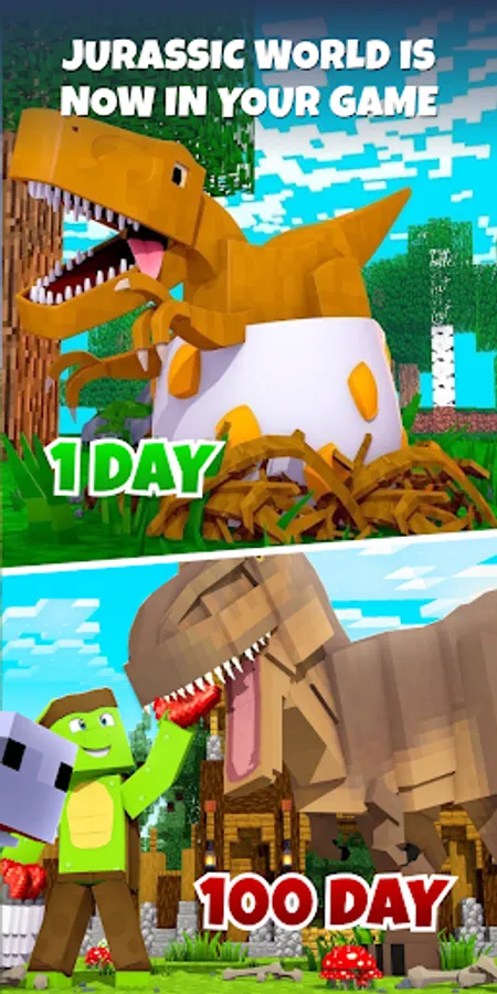 Dinosaur Mods for Minecraft is an application that will immerse you in the world of dinosaurs and other giant creatures. Feel like an archaeologist as you collect plant fossils and DNA of prehistoric creatures. You will have the opportunity to create your own fearsome mobs by making eggs to arrange epic fights and battles.